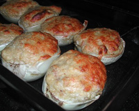Petites aubergines blanches farcies par un soufflé de thon-aubergine.
