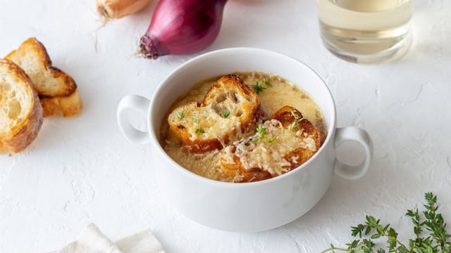 Plat emblématique de la cuisine française, la soupe à l'oignon est connue et appréciée dans le monde entier. La préparer c'est simple et facile, grâce à l'aide du robot Monsieur Cuisine. Recette pour Mr Cuisine Smart, Connect et Plus.
