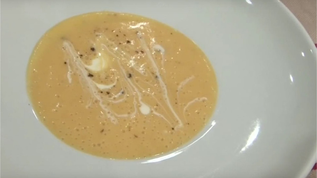 Versez dans un blendeur ou robot, ajoutez la crème et le beurre et mixez.