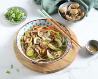 Vous pouvez utiliser les champignons de votre choix (moi-même j'utilise des shiitakes ou des coulmelles mais les champignons de Paris font très bien l'affaire).