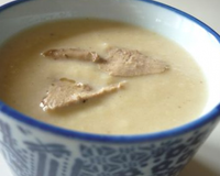 Voici une soupe qui allie les goûts forts et subtils du foie gras et du céleri... C'est une entrée à la fois simple et festive