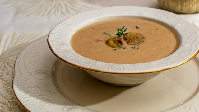 En Corse, cette soupe de châtaignes est une tradition. La première étape consiste à fendre l'écorce des fruits secs puis à les faire cuire pendant une vingtaine de minutes, de préférence à la vapeur. Ensuite, vous devez faire suer vos châtaignes (sans peau blanche) avec de l'ail et de l'échalote, un filet d'huile d'olive mais aussi un bouillon de volaille pendant vingt autres minutes. Si vous le souhaitez, vous pouvez rajouter une tranche de jambon ou bien des dés de légume tels que du potimarron, du potiron ou encore de la courge. Juste avant de mixer ces ingrédients et de les passer au chinois, vous allez rajouter un peu de crème fraîche afin que chaque cuillérée de votre soupe de châtaignes devienne onctueuse.