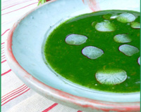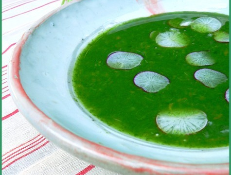 Vous pouvez utiliser les fanes de radis pour confectionner de délicieuses soupes froides ou chaudes. Une version tapioca glacée librement inspirée par une recette de Georges Blanc.