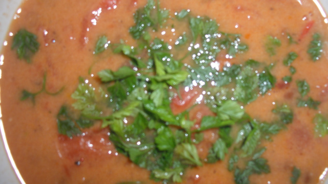- 2Porter à ébullition, baisser le feu et laisser mijoter 20 min. Assaisonner avec le sel et le poivre. Servez et ajouter la coriandre ciselée.