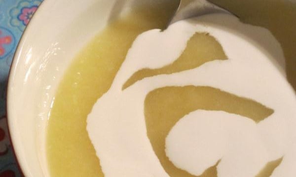 Verser un peu de crème de coco sur la soupe.