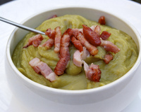 Pour une soupe au goût plus prononcé, faites cuire les pois avec un morceau de jambon, de poitrine fumée ou un cube de bouillon. Les lardons sont facultatifs.