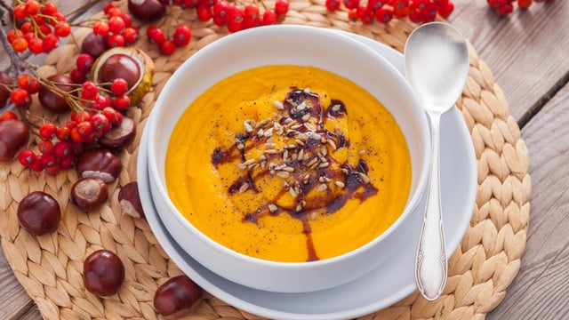 Parmi tous les légumes d'automne, le potiron a succès car son petit goût sucré bluffe toujours. Au lieu de le décliner en frites ou en gratin, vous allez préparer une soupe onctueuse. Prête en un temps record, elle va vous dépanner les jours où vous manquez de temps ou de motivation pour cuisiner un repas équilibré. Pour la réussir, vous allez aussi avoir besoin d'un cube de bouillon, d'ail, d'oignon mais aussi de quelques carottes. Si vous n'en avez plus vous pouvez la remplacer par de la pomme de terre. Ensuite, vous allez mixer puis rajouter un peu de crème fraîche ainsi que des châtaignes. Pour encore plus de gourmandise, vous pouvez rajouter un peu de fromage (gruyère, comté) dans les assiettes.