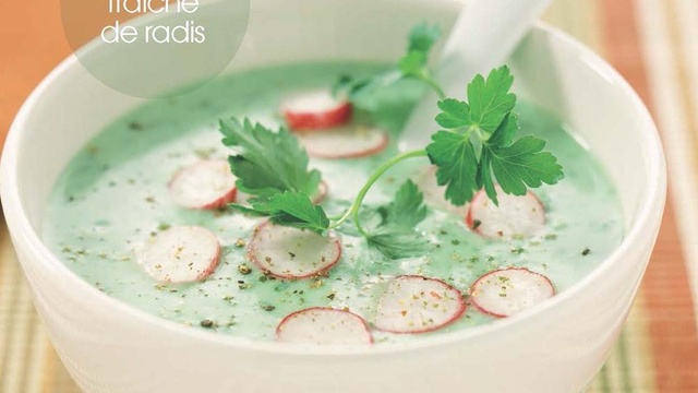 - 6Laisser la soupe refroidir, rectifier l'assaisonnement et la mettre au réfrigérateur. Servir très frais saupoudré de ciboulette et décoré de quelques rondelles de radis.