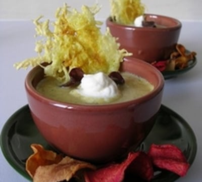 J'ai accompagné cette soupe de chips de légumes.