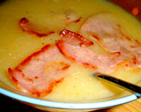 Pour les tranches de bacon restant, les faire revenir à la poêle en lanière. Au moment de servir les déposer sur la soupe.