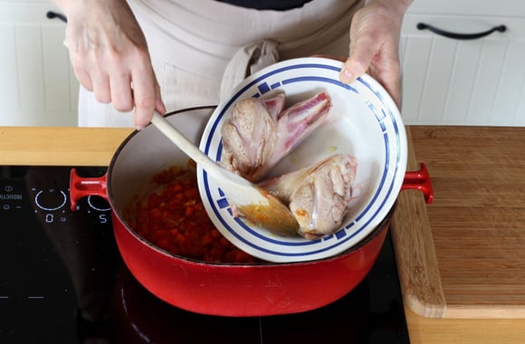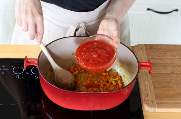 6Ajoutez la pulpe de tomates, mélangez et salez.