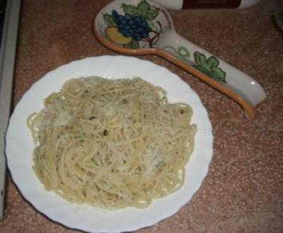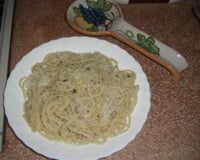Saler l'eau des pâtes quand elle bout, plonger les spaghettis et cuire al dente, fermes. Égoutter et garder l'eau de cuisson. Verser les spaghettis dans la poêle et mélanger bien en ajoutant un peu d'eau de cuisson de manière à créer une sauce légère. Servir aussitôt avec beaucoup de parmesan et déguster chaud.