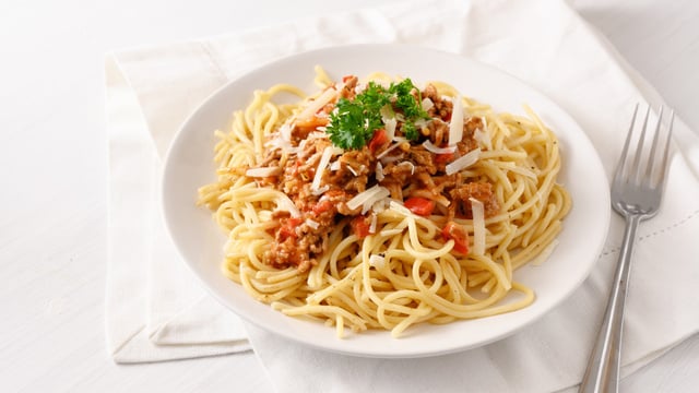 Les spaghetti bolognaise font toujours plaisir aux enfants, mais pas que. On est convaincus que vous allez aussi adorer cette recette. Si vous cherchez un plat rapide à préparer le midi ou le soir, c'est l'idéal. Commencez par saisir, et surtout pas bouillir, votre bœuf avec un filet d'huile olive pour lui donner un goût caramélisé. Ensuite, pour gagner du temps, mixez la garniture aux légumes. S'il y en a trop pour cette fois, congelez-la, elle pourra dépanner plus tard. Une fois mélangée à la viande, assaisonnez le tout avec des épices comme du thym ou du basilic. Enfin, pour donner cette couleur rouge si caractéristique à vos spaghetti bolognaise, utilisez du concentré ainsi que du coulis de tomates. Avant de passer au mijotage, rajoutez une pincée de sucre en poudre pour réduire l'acidité des tomates. Après avoir fait cuire les pâtes al dente, gardez un peu d'eau de cuisson, elle va lier la sauce aux spaghetti bolognaise.