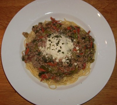 Une recette de pâtes, avec une "bolognaise sans tomates"