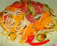 Egouttez les spaghetti, dresser dans un plat, les arroser avec la sauce et les servir bien chauds, accompagnés ou non de fromage râpé.