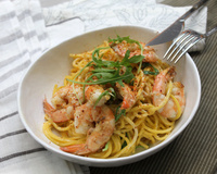 Pendant ce temps, dans une poêle bien chaude, verser un filet d'huile d'olive et faire revenir les gambas jusqu'à ce qu'elles soient grillées. (Attention à ne pas les brûler)