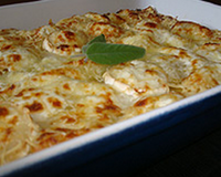 Pendant ce temps, diluer le fond de veau dans le verre d'eau puis faire revenir les lardons jusqu'à ce qu'ils soient légèrement dorés. faire fondre le fromage de chèvre coupé en tranches . Quand le fromage est fondu, ajouter le fond de veau et laisser mijoter 5 min.