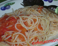 La meilleure et la plus simple des recettes : des tomates, de l'huile d'olive, de l'ail et DES SPAGHETTIS...