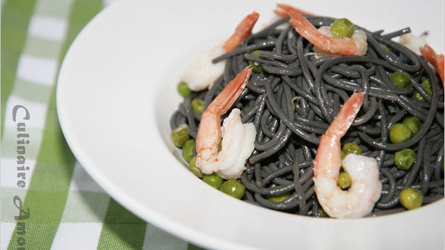Les Spaghettis noirs ou Spaghettis à l'encre de seiche possède un charme particulier. La couleur noire de pâtes m'impressionne. Elle est chic et savoureuse...