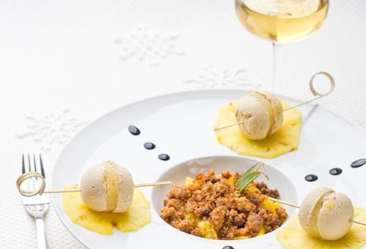 Une association originale entre foie gras et ananas dans une présentation originale et moderne.