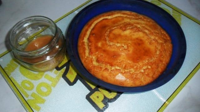 Fouettez tous les ingrédients sauf le caramel pendant 3 minutes.