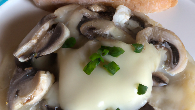 Dresser les St-Jacques dans l'assiette, quelques champignons sur les noix et un cordon d'émulsion crémeuse d'oignons.