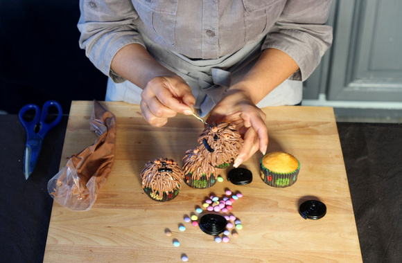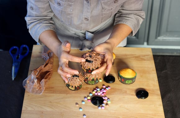 Avec un peu de colorant, réalisez un petit point au centre de chaque oeil pour donner vie à Chewbacca.