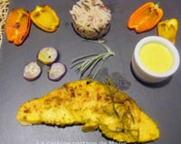 Un steak de requin mariné et grillée avec ses légumes croquants et son riz sauvage.
