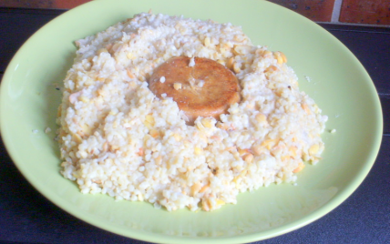 Puis avant le terme de la cuisson des steak mettre à réchauffer le blé aux cinq céréales.