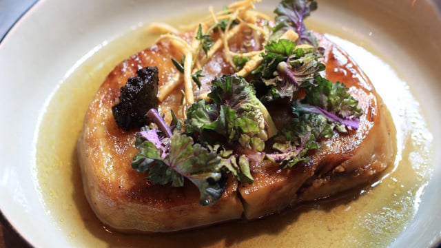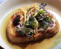 Servir avec un peu de sel, quelques feuilles de chou croquantes et le jus de ginseng. Terminer par une pincée de poudre de sel de riz et d'huile d'olive.