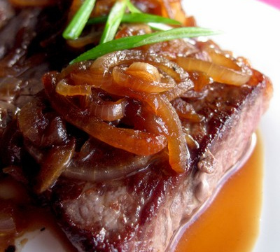 Un bon steak parfumé à la sauce soja et recouvert d'oignons, comme on fait en Nouvelle-Calédonie.