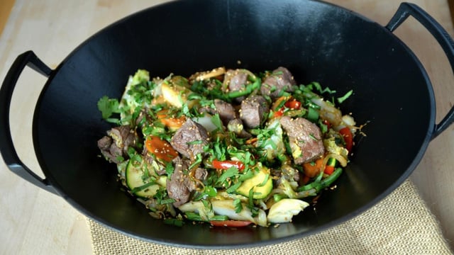 De stir, mélanger et fry, frire, une technique de cuisson venue d'Asie idéale pour une viande d'agneau tendre à souhait, des légumes de saison très croquants et un fabuleux mélange de saveurs.