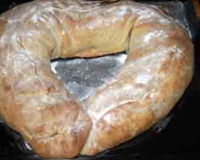 La veille ou quelques heures avant, faites macérer les raisins secs dans du thé earl grey très fort ou dans l'alcool de votre choix, puis préparer la pâte : Dissolvez le sel et le sucre dans l'eau. Mélangez l'huile et l'eau à la farine tamisée. Travaillez la pâte jusqu'à obtenir une pâte homogène, bien lisse et élastique. Formez une boule et huilez-la. Couvrez de film plastique alimentaire et laissez-la reposer au frigo une nuit ou quelques heures. Si vous faites la pâte le jour même, ne la laissez pas reposer au frigo pour qu'elle reste bien élastique.