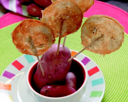 Disposer sur une toile antiadhésive des petits tas que l'on étale avec le dos d'une cuillère, poser un pic de bois sur chaque tas pour former une sucette et enfourner 6 à 8 minutes à 180°.