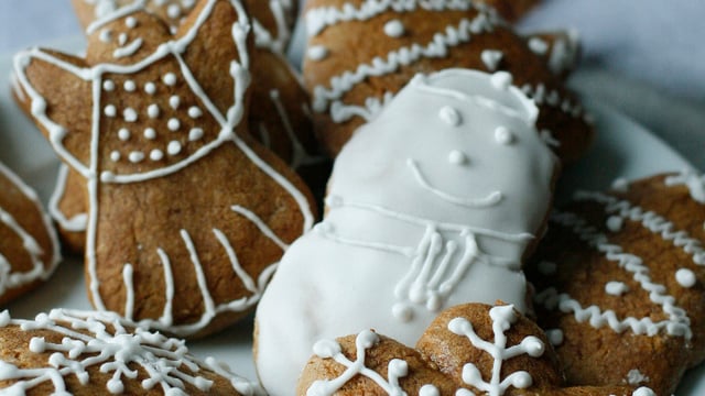 Cuire, au four préchauffé à 180°C pendant 15 minutes. Laisser refroidir puis décorer de glaçage royal : Mélanger le blanc d'oeuf avec le jus de citron, puis tout en mélangeant ajouter progressivement le sucre glace jusqu'à consistance désirée.