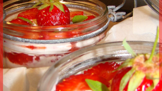 Commencez à déposer une ou 2 cas de purée de fraises sur le bas de votre bocal de conserve. Ensuite mettre 2 cas de crème de mascarpone et juxtaposez les couches jusqu'au haut du bocal en terminant par une couche de crème.