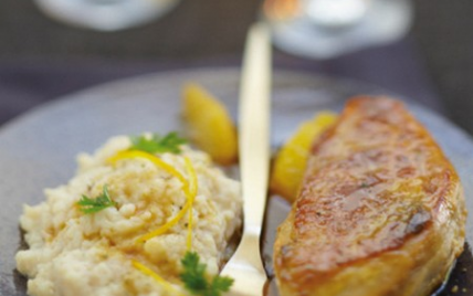 Servez avec une purée de céleri parfumée avec des zestes d'oranges.