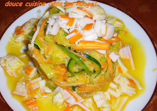 Une salade très fraîche que je fais habituellement sans surimi . Ici j'ai choisi du surimi goût crabe.