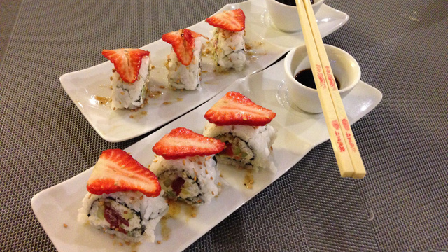 Un mariage surprenant mais extrêmement subtil du poisson cru et de la fraise... Si vous êtes amateur de sushis, vous ne pourrez que succomber à ces rolls !