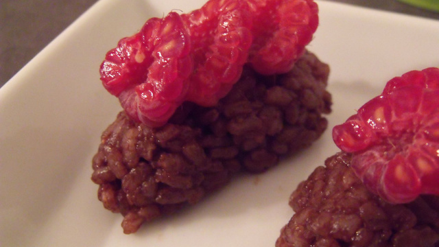 Aplatir légèrement la surface des sushis et y déposer 3 demi-framboises - 4
