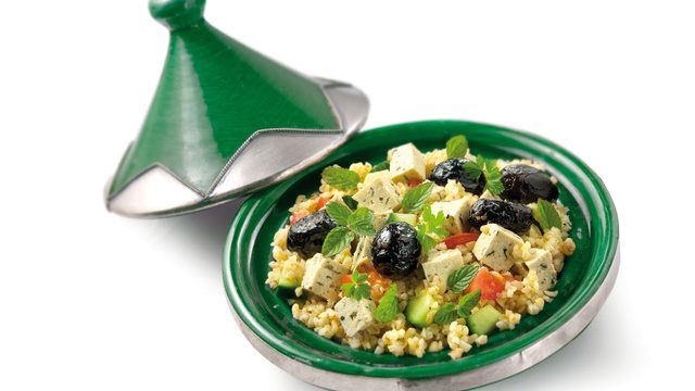 Verser l'eau sur le boulghour. Laisser reposer 1 à 2 heures jusqu'à ce que le grain soit tendre.