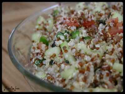 N'ayant point de boulghour dans mes placards, pourtant remplis de céréales, j'ai opté pour du quinoa beaucoup plus léger et parfumé en goût. Ce taboulé alors fraîchement préparé de graines blanches et rouges était alors parfait pour une soirée barbecue entre amis ....