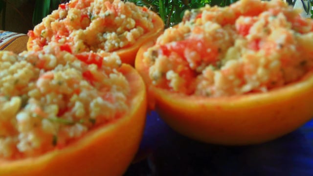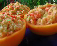 Vous n'avez plus qu'à remplir le taboulé dans les coques de pamplemousse et a servir !
