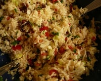 Pendant ce temps, préparer et mêler les autres ingrédients : les tomates, les oignons et le concombre taillés en dés ; le zeste et le jus d'un citron, les épices selon votre goût (ne pas hésiter à goûter), deux cuillères à soupe d'huile d'olive et les herbes.