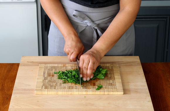 1Lavez et hachez finement le persil et la coriandre.