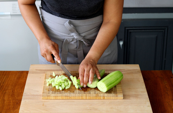 4Epluchez le concombre et coupez-le en dés de 2 cm environ.