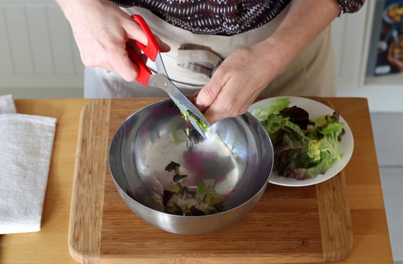 3Dans un bol, coupez les feuilles de laitue en petits morceaux.