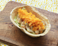 Faites chauffer les barquittas 2 à 3 minutes dans un four préchauffé à 200°C, afin de les rendre croustillantes. Détaillez la laitue iceberg en très fines lanières et râpez la mimolette.