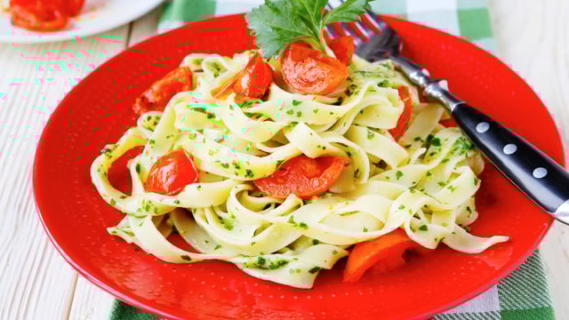 Un place simple et délicieux, avec du pesto maison, à agrémenter de tomates cerise pour encore plus de saveurs.