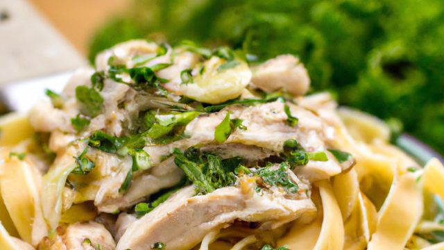 Finir par un mélange de persil et ciboulette et servir sur les pâtes.